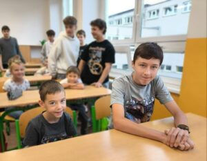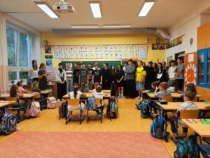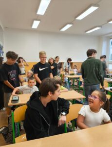 Uvítání prvňáčků 2 září, 20252 září, 2025 Dnes prvňáčky z 1.A navštívili jejich noví velcí kamarádi. Současná 9.A se ujala malých školáčků, provedla je po škole, ukázala jim učebny a trochu si s nimi popovídala. Navigace pro příspěvek starší Previous post: Příměstský tábor – 3. termínnovější Next post: Poznáváme se v 1.B
