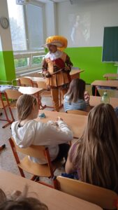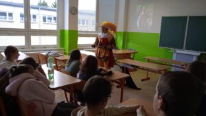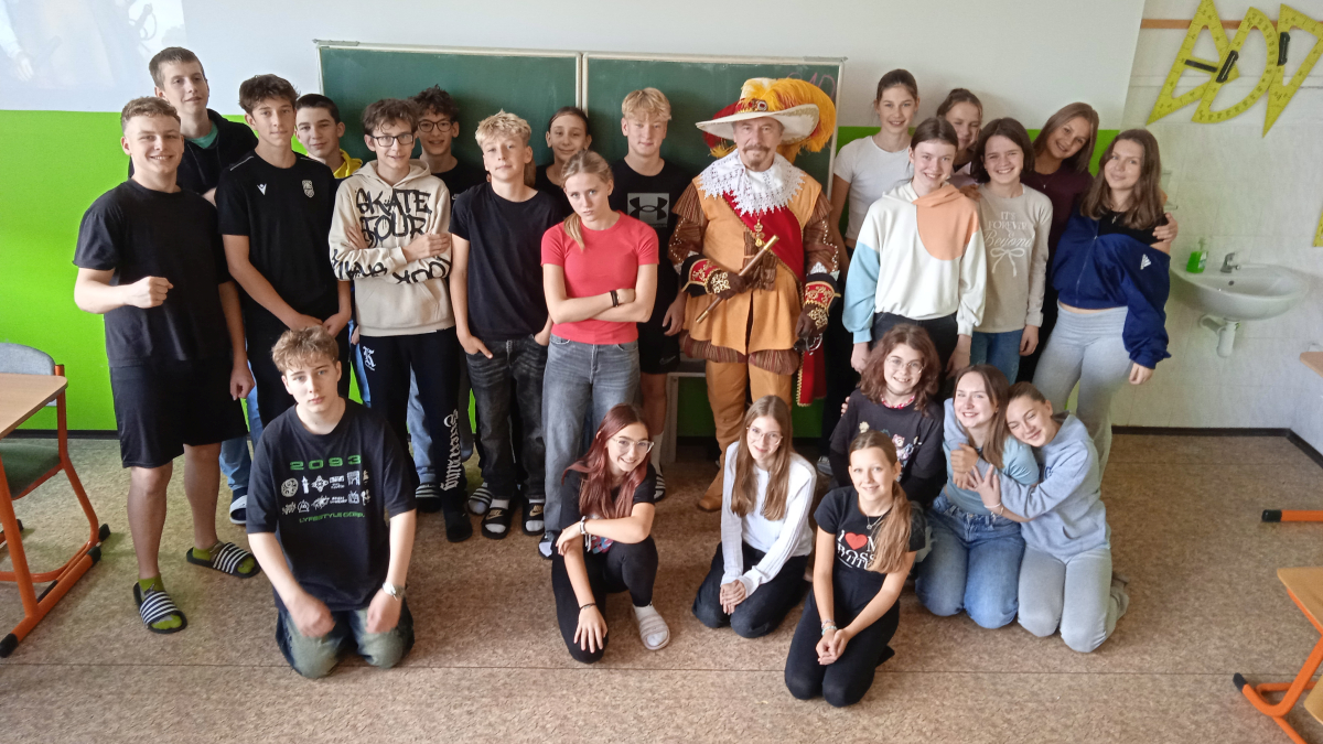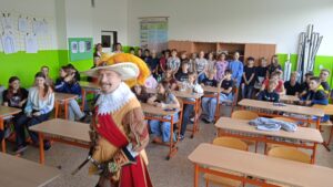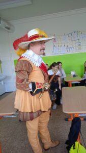 Dnes nás v 8.B navštívila jedna z velmi známých osobností naší historie, Albrecht z Valdštejna, mimo jiné, vévoda Frýdlantský.