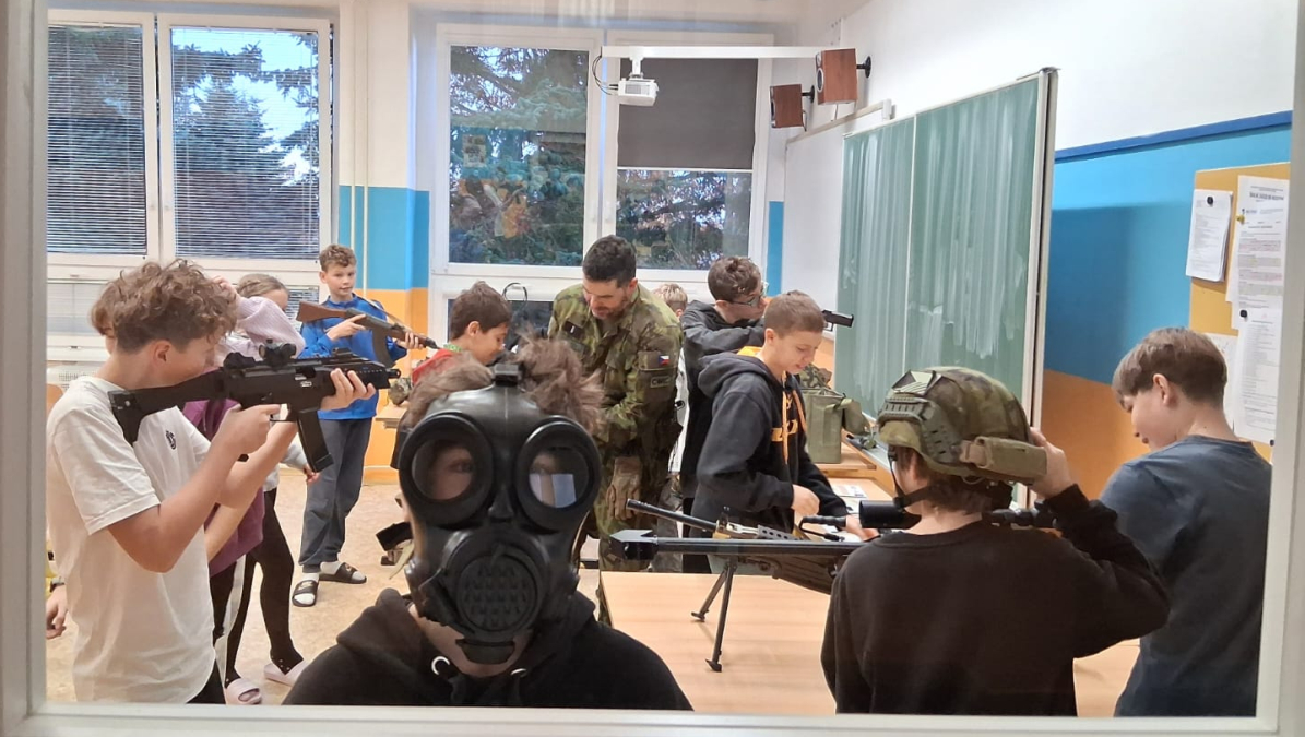 V pátek 24. října nás navštívili zástupci Krajského vojenského velitelství i Českého červeného kříže. Žáci si mohli vyzkoušet základy zdravovědy a první pomoci, dozvěděli se mnoho informací o armádě, vyzkoušeli si vojenskou výzbroj a zúčastnili se lekce sebeobrany.