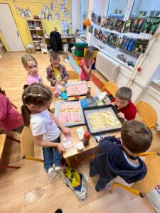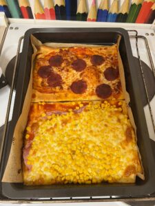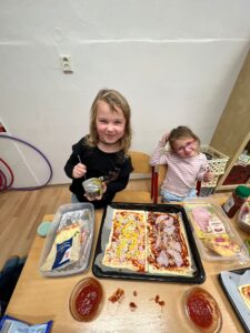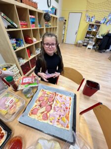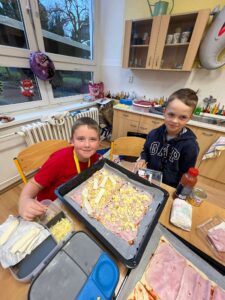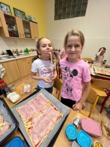 Tentokrát jsme se pustili společně do pečení. A co jsme pekli? No přeci pizzu. Tu si každý připravil podle vlastní chuti