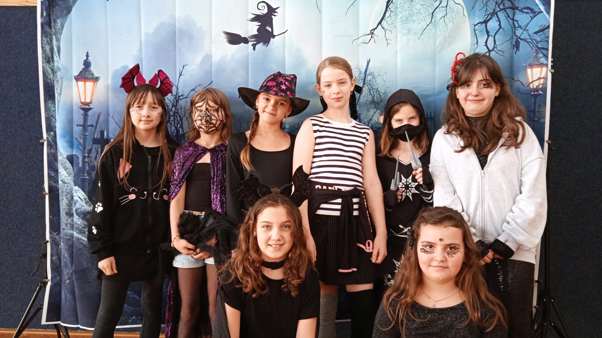 O velké přestávce proběhla soutěž o nejlepší (nejstrašnější) masku školy. Páteční rej strašidel a příšer jsme si parádně užili.