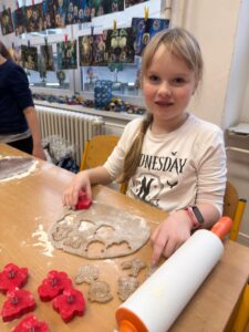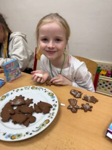 Naše holky si užily odpoledne provoněné skořicí a vanilkou při společném pečení perníčků a lineckého cukroví. S nadšením zdobily každý perníček barevnými polevami a fantazii se opravdu meze nekladly. Linecké hvězdičky a srdíčka mizely z plechu tak rychle, jak je stíhaly slepovat marmeládou. Společné pečení navodilo krásnou sváteční atmosféru.