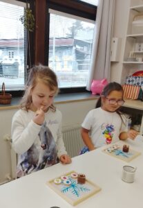 Zima v sadu 15 prosince, 202515 prosince, 2025 Už podruhé se 1.A vypravila do Motyčkovic kliky. Tentokrát děti zjistily, co se děje v sadu v zimě. Pověděl jim o tom kouzelný strom. Navíc děti vyzkoušely své smysly při ochutnávce sušeného ovoce a povidel. Mňam ! Navigace pro příspěvek starší Previous post: Tisk z hloubkynovější Next post: Vánoční přání