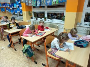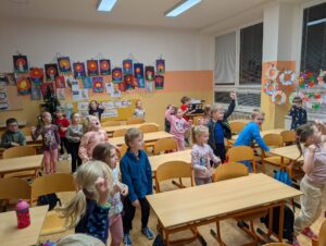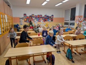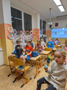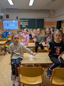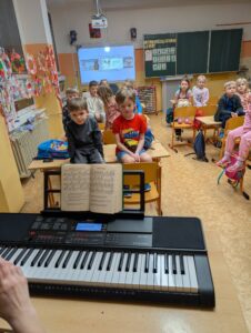 Dnes k nám budoucí prvňáčci zavítali již podruhé. Čekal je hudební program. Seznámili jsme se, zahráli si na sochy, na hudební nástroje a společně jsme si zazpívali Tři citrónky. Děti byly velmi aktivní, pozorné a šikovné.