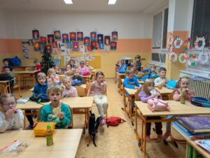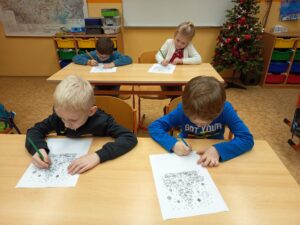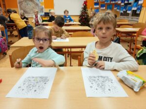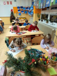 Ve středu 17. 12. proběhl první Předškoláček. Děti se seznámily s budovou naší školy a probádaly všechna její zákoutí. Po „výpravě“ jsme se posilnili svačinkou a pustili se do vánoční omalovánky.