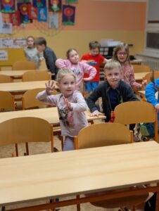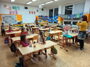 Sejdeme se ve vestibulu školy, kde na Vás již budou čekat paní učitelky.