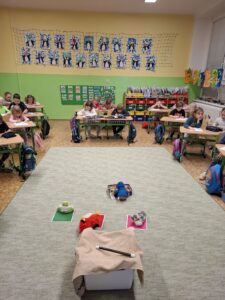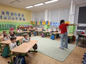 Během anglického Předškoláčka jsme s dětmi procvičovali počítání do šesti a základní barvy. Děti se seznámily se zvířátky a jejich názvy v angličtině. Výuka probíhala hravou formou pomocí her a obrázků. Součástí hodiny bylo také učení jednoduchých anglických písní. Děti se do aktivit zapojovaly s velkým nadšením.