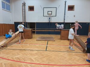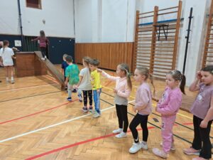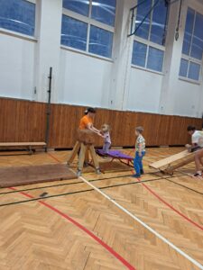 Naši budoucí prvňáčci si vyzkoušeli opravdický tělocvik a vše co do něj patří: honičku na zahřátí, rozcvičku na protažení, cvičení na nářadí a soutěže ve družstvech. Děti byly opravdu šikovné a medaili 🥇 si zasloužily všechny! Sportu zdar, příště je čeká plavání 🏊🏻♀️.