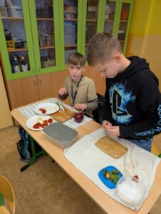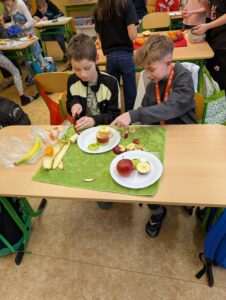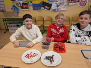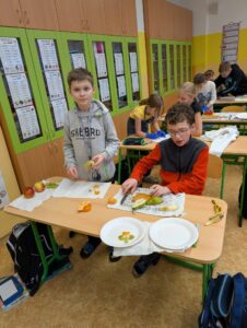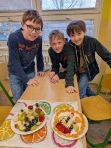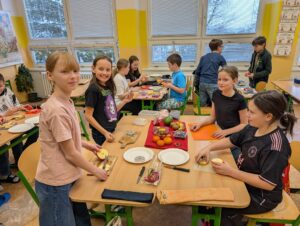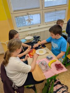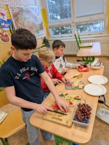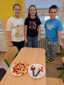 Pracovní činnosti v 5.B 17 února, 202617 února, 2026 Dnes jsme o PČ tvořili ovocné párty mlsání s rozpuštěnou čokoládou. Děti tvořily ve skupinkách originální talířky inspirované přírodou. Navigace pro příspěvek starší Previous post: Sbírka pro Azylpes Krásný Lesnovější Next post: Sladké dobroty od Holčičin